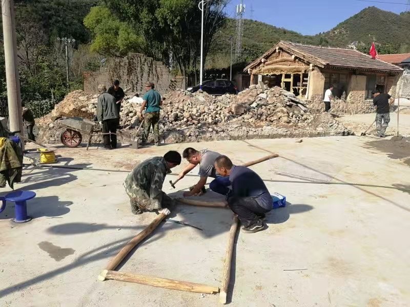 板鋪村地處南山區,每年十月底就會(huì )出現霜凍,此時(shí)正值施工的黃金時(shí)節,公司駐板鋪村工作隊和村干部趁著(zhù)這個(gè)好時(shí)機抓緊動(dòng)工建設。為確保該惠民工程順利進(jìn)行,駐村工作隊和村干部、黨員代表、村民代表在建設前多次召開(kāi)會(huì )議,共同商議建設事宜,決定將原大隊部西側的四間舊房拆除,并在村里建起一支施工隊伍,從建檔立卡戶(hù)和村民中挑選施工人員,為他們增收提供機會(huì )。經(jīng)過(guò)大家的共同努力,最終與原房主達成協(xié)議,將原來(lái)的四間舊房收回,歸村集體所有,同時(shí)組建起了一支施工隊伍。