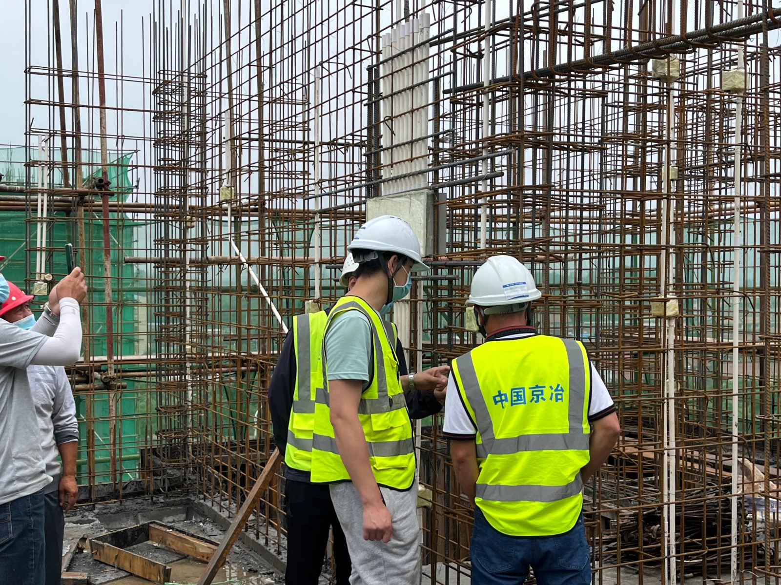 此次觀(guān)摩交流,重點(diǎn)圍繞工程主體墻柱鋼筋綁扎、模板支撐及混凝土澆筑等施工工藝和施工方法展開(kāi)。項目工程師王亮從項目工程概況、施工工序和質(zhì)量控制等方面為參觀(guān)人員做了項目介紹,遷西縣質(zhì)量監督員從鋼筋綁扎、電渣壓力焊接頭、鋼筋錨固、剪力墻鋼筋拉鉤分布、制式模板定位筋制作等方面為觀(guān)摩團介紹了項目施工做法和亮點(diǎn),對觀(guān)摩團提出的問(wèn)題做了講解說(shuō)明。觀(guān)摩中,一行人與項目管理人員作了深入交流探討,對項目在工程質(zhì)量管理方面取得的成績(jì)給予了高度評價(jià)。